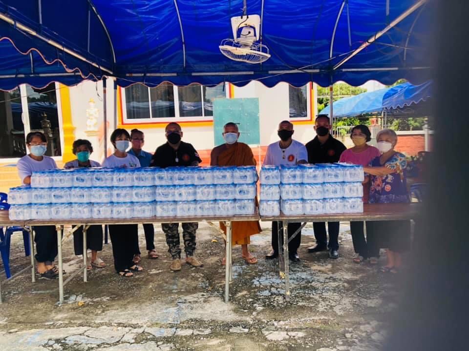ร่วมบริจาคน้ำดื่มให้กับจุดคัดกรองหน่วยอนามัยน้ำบ่อหลวง จำนวน100แพ๊ค ซึ่งจะได้ฉีดวัคซีน ให้กับผู้สุงอายุ ในตำบลน้ำบ่อหลวง